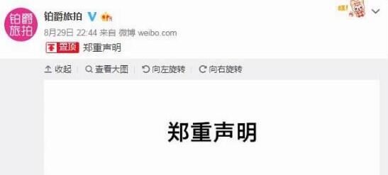 铂爵旅拍还称,希望广大网友及各网络平台不要听信谣言、以讹传讹,发布违背事实、有悖法理、损害公司声誉的报道与评价。否则将循法律途径追究相关单位活个人的法律责任。