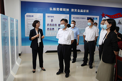 宋鑫董事长一行首先考察了研发质检中心、劳模工作室、生产车间和产品展示厅,详细了解了公司技术研发、质量检测、职工创新、生产经营等方面的情况。