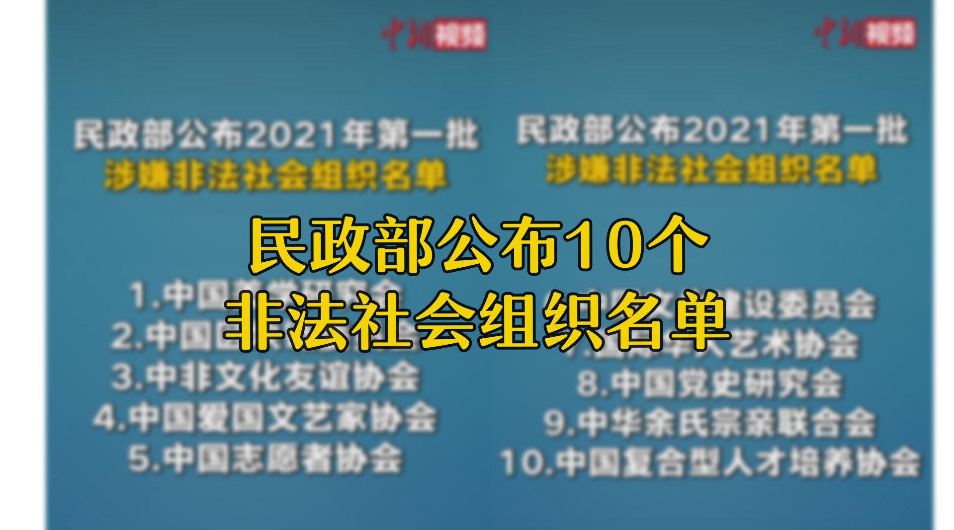 近年来,民政部门持续开展打击整治非法社会组织工作,依法处置了大批非法社会组织,有效净化了社会组织发展环境,取得了良好的社会效果。但是,一些组织和人员仍然罔顾法律红线,继续违法开展活动。为进一步加大打击整治力度,充分发挥社会监督作用,现将前期核查中缺乏证据线索的2021年第一批涉嫌非法社会组织名单予以公布,提醒社会公众谨防上当受骗:
