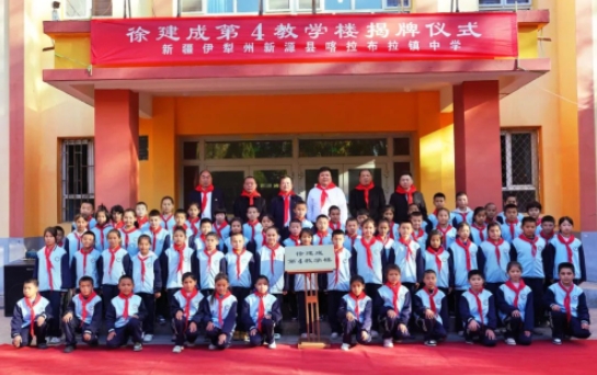 为感念徐建成先生对两栋教学楼给予的爱心资助,两栋教学楼被命名为“徐建成第4教学楼”(喀拉布拉镇中学)、“徐建成第5教学楼”(阿勒玛勒镇中学),宽敞明亮、安全舒适的教学楼,为学生们创造了更好的学习氛围和学习空间,有助于提升孩子们的学习兴趣和积极性,助力达成优秀的教学成果。