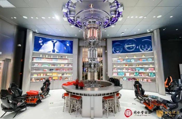该店将汽车文化与健康场景大胆融合,将全球知名六大汽车品牌的发动机、座椅等元素与草本饮品、养生膳食、健康产品、中医馆跨界组合,形成了一个面积约600平方米、充满未来感的健康生活方式空间,可提供“健康+汽车”“健康+时尚”“健康+艺术”等多种形式的国潮健康生活方式体验。