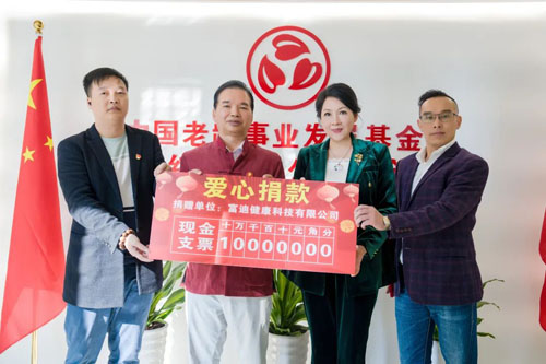 在捐赠仪式上,中国老龄事业发展基金会红色文化公益基金粤港澳大湾区工作站站长徐乃华表示:“感谢富迪健康科技给红色老龄事业送来了金色的阳光,温暖了老年人,这充分体现了富迪企业对老年人的关爱,对社会的奉献,对国家的尽责。同时我们也注意到,富迪健康科技从成立之初至今一直延续公益事业,始终不遗余力地回馈社会,公益系列项目涵盖了捐资助学、扶危济困、医疗救助、赈灾安老等诸多领域,累计捐款捐物达26亿元。今天又向中国老龄事业发展基金会捐款10万元,解决和改善孤寡老人的生活和健康问题,帮天下老人解难,为党和政府分忧,其公益情怀我们由衷地敬佩!我们愿同富迪企业一道为我国的老龄事业发展作出应有的贡献。”