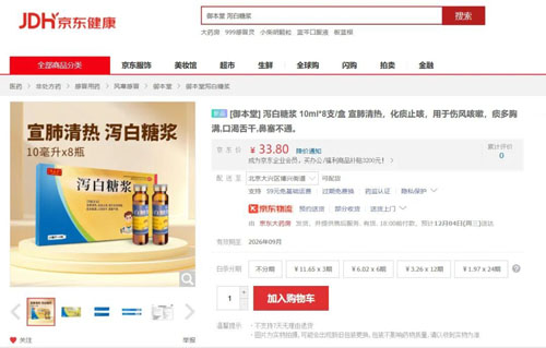 (京东大药房御本堂泻白糖浆页面)