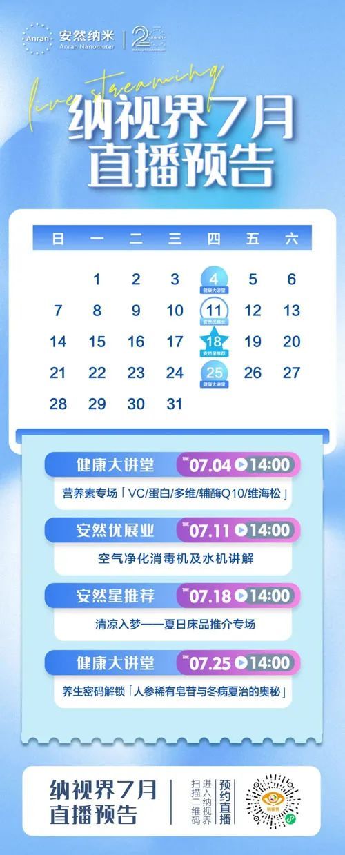 首页 > 企业 安然纳视界7月直播计划精彩早知道 2024/7/12 来源:安然 道道网讯 如果您错过了春日限定,错过了鸢尾花开,那您这一次绝对不能再错过与纳视界直播间的专属夏日约定! 清凉一夏,好梦床品专场来啦!更有营养产品推介、健康大讲堂提前解锁养生密码、优展业直播等您来学习~纳视界7月直播计划,精彩早知道! 点赞(0) 收藏 免责声明:如有侵犯版权,请及时联系处理。