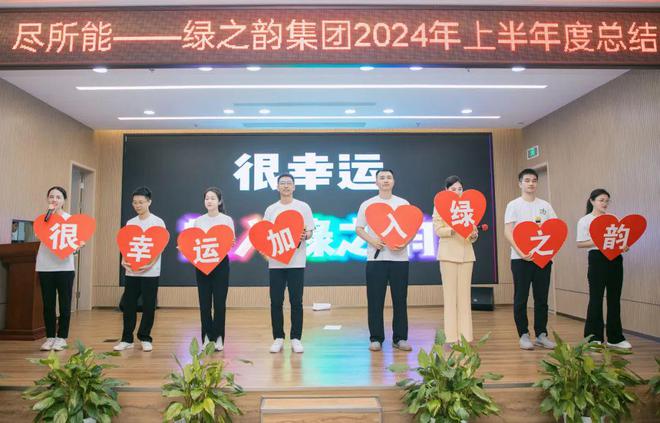 会议在全体员工宣读《绿之韵工作宣言》的诵读声中拉开序幕。会议伊始,上半年新入职的员工上台作自我介绍,并献上精心准备的节目表演。随后,会议通过视频的形式回顾了2024上半年集团重大活动,全体员工的内心获得了笃定前行、尽己所能的澎湃力量。
