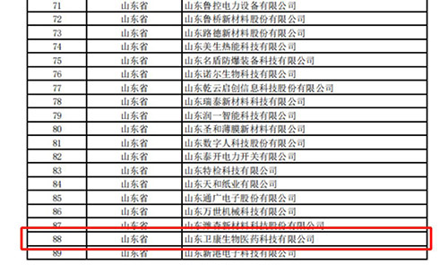 道道网讯 9月3日,山东省工业和信息化厅对山东省第六批专精特新“小巨人”企业名单进行公示。山东卫康生物医药科技有限公司凭借其卓越的创新能力和市场竞争力荣获国家级专精特新“小巨人”企业称号。